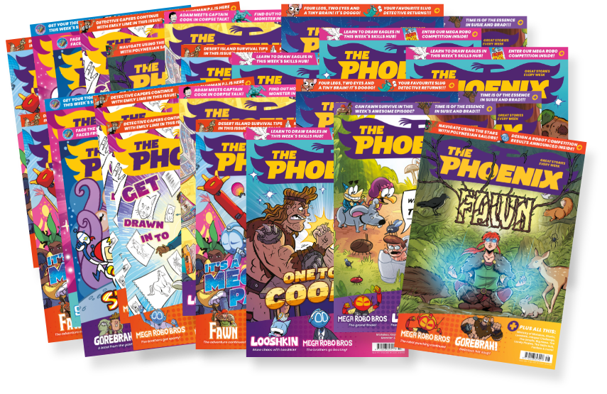 The Phoenix is a weekly magazine for 7-14 year olds that’s packed with incredible comics, drawing guides and plenty more that inspires kids to get reading, writing, and drawing!